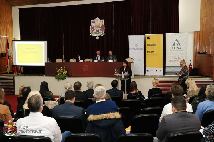 Организаторе скупа, чланове и координаторе локалних акционих тимова је у име домаћина поздравила др Гордана Дамњановић, чланица Градског већа за здравствену и социјалну заштиту која је подсетила да је град Крагујевац недавно конституисао локални акциони тим против трговине људима кога очекује израда локалних акционих планова и едукација у сарадњи са ИРЦ и НВО Атина. Суштина је да се ово питање које се налази у националним стратешким документима спусти на локални ниво где ће се успостављати први контакти, добијати информације и организовати едукације за оне који могу бити у ризику да постану жртве трговине људима. Крагујевац има искуства у томе још од 2003. године када је тежиште било на Градским организацијама Црвеног крст. Имамо локални тим и локалну мрежу коју смо ревидирали, а оно што нас у будућности чека је озбиљна едукација, рад и јачање капацитета свих, како професионалаца тако и оних који могу бити у ризику да постану жртве трговине људима, а то може, казала је др Дамњановић постати свако од нас уколико нема праве информације и уколико не постоји подршка система.