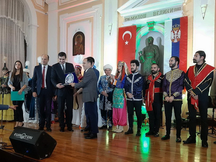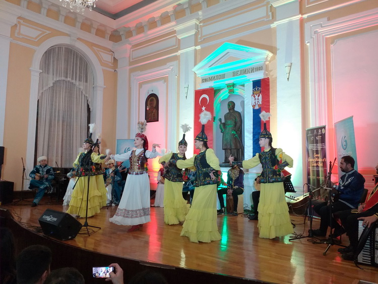 У оквиру обележавања десетогодишњице рада Инститиута Јунус Емре, у организацији Међународне организације туркофоне културе ТУРСКОЈ, а уз подршку града Крагујевца, Канцеларије за младе и Музичког центра, у Првој крагујевачкој гимназији приређен је концерт Мелодије туркијског света. Завршном концерту балканске турнеје, која је одржана још у Мађарској, Хрватској и Босни и Херцеговини, присуствовали су и амбасадори Турске Танжу Билигич и Казахстана Габит Сиздикбеков, у пратњи домаћина, градоначелника Радомира Николића.