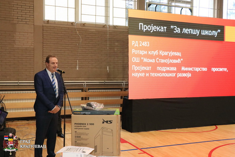 Министар просвете Младен Шарчевић посетио је данас и ОШ „Мома Станојловић“ где је у оквиру пројекта „За лепшу школу“, који реализује Ротари клуб, овог пута из Крагујевца, Лесковца, Краљева и Чачка, уручио десет беспилотних летилица основним школама из тих градова, које се користе у оквиру предмета техника и технологија и информатика и рачунарство. Увођењем беспилотних летилица и програмирањем њиховог кретања подиже се дигитална писменост, компетенција и мотивисаност како наставника, тако и ученика.