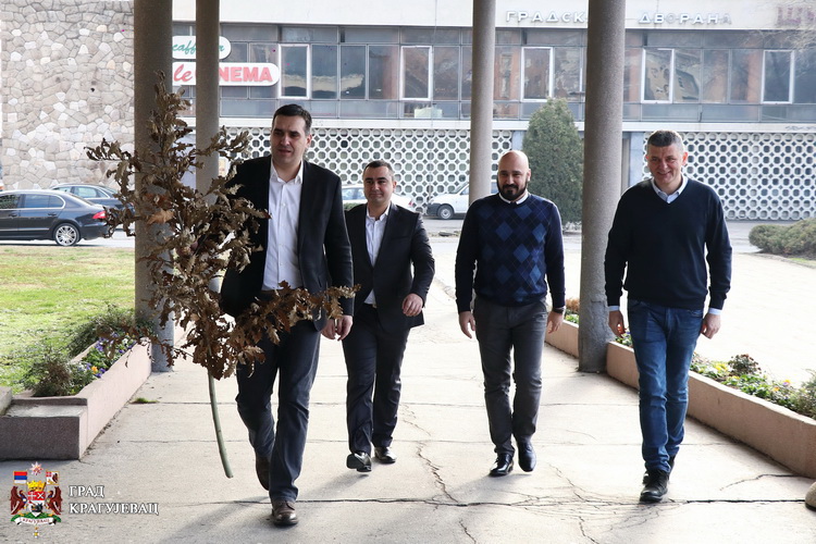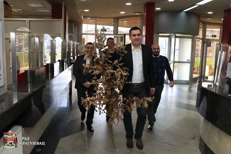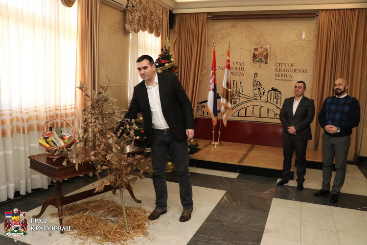 Бадњак са градоначелником Крагујевца, унели су заменик Ивица Момчиловић, председник Скупштине града Мирослав Петрашиновић и члан Градског већа Дамјан Срејић.