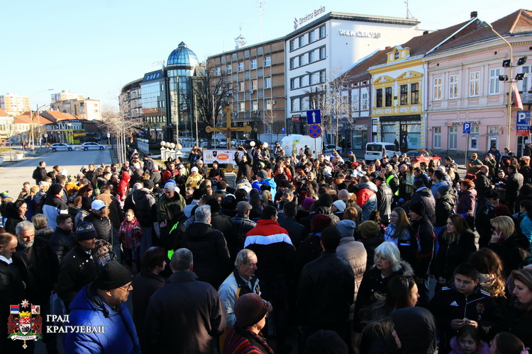 Тачно у подне, на Тргу код Крста, трећи пут заредом, у Крагујевцу је у присуству великог броја грађана, освештaна божићна чесница уз благослов Епископа шумадијског господина Јована.