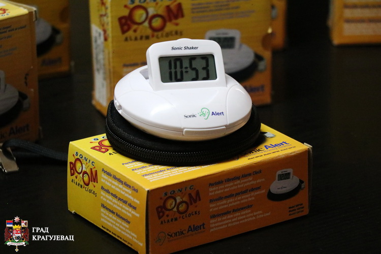 У оквиру пројекта “Приступачан град за глуве и наглуве'' др Гордана Дамњановић, чланица Градског већа за здравствену и социјалну заштиту уручила је данас осам вибрирајућих будилника члановима Удружења глувих и наглувих Шумадијског округа. Реч је о пројекту у оквиру Регионалног програма локалне демократије на Западном Балкану (РеЛОаД) који финансира ЕУ а спроводи Програм Уједињених нација за развој (УНДП).
