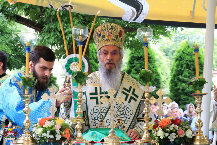 Стара црква у Крагујевцу данас, другог дана силаска Светог Духа на апостоле, обележава своју славу, а истовремено је и литија града Крагујевца. Тим поводом, под Записом у порти светог храма, Његово преосвештенство епископ шумадијски господин Јован уз саслужење свештенства Шумадијске епархије, служио је јутрос Свету архијерејску литургију. Литургији су присуствовали градоначелник Крагујевца Радомир Николић, председник Скупштине града Мирослав Петрашиновић, представници Полицијске управе, градских служби и бројни верници.