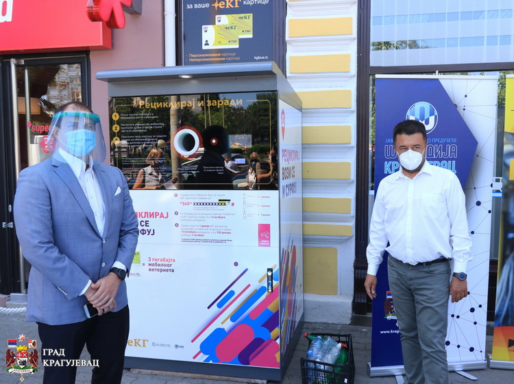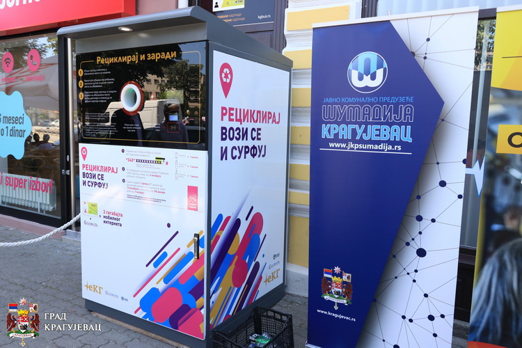 Ради унапређења својих услуга ЈКП Шумадија Крагујевац набавило је рецикломат – паметну машину за прикупљање и сортирање амбалажног отпада. Рецикломат, први у Србији овог типа, различите врсте отпада, пластичне флаше, лименке и стаклену амбалажу поред разврставања и сладиштења, вреднује, и новчани износ предате амбалаже учитава на песонализоване и неперсонализоване еКГ картице.