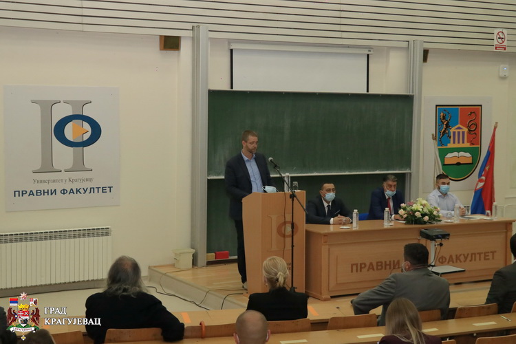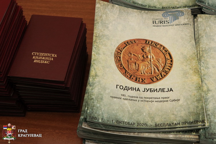 Имате разлог да будете поносни на себе јер сте уписали студије права у години јубилеја, рекао је декан Проф. др Драган Вујисић. Пре 180 година прва генерација студената права модерне Србије уписала је Правно одељење на крагујевачком Лицеју. Будите поносни јер сте њихов изданак.
