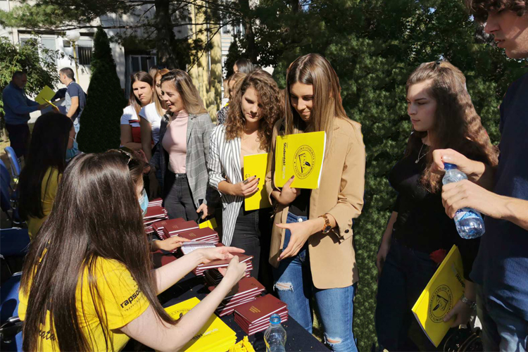 У башти Економског факултета, у присуству представника града и Универзитета, организован је свечани пријем за бруцоше, као и уручење индекса.