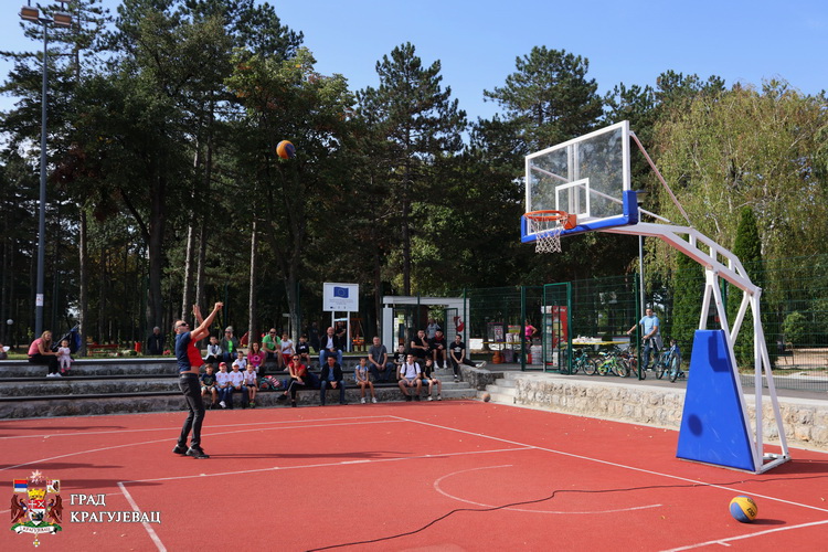 Након отварања и обиласка терена у Великом парку, Предраг Стевовић, члан Градског већа за спорт, Бојан Илић, директор СПД Раднички, Никола Фржовић, директор ФК Раднички и Сава Спасић, организатор манифестације одиграли су гем тениског дубл меча. Крагујевчани које је окупила хуманост и жеља да Миња добије шансу за излечење на спортским теренима у Великом парку бацали су тројке, играли одбојку, баскет и тенис.