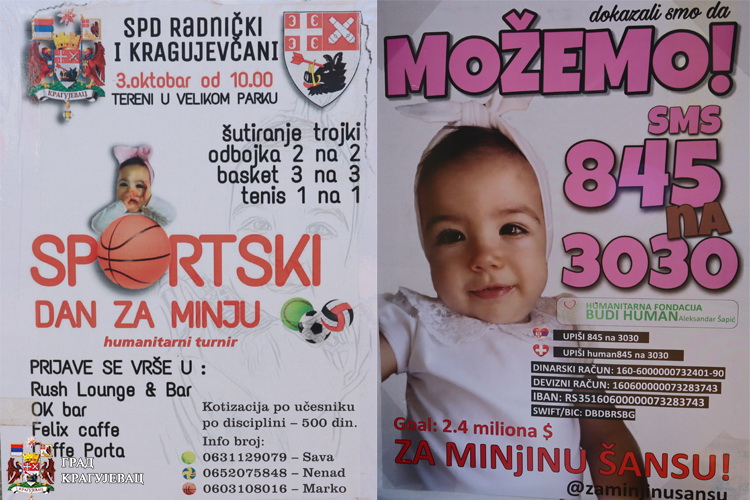 У партнерској организацији Спортског привредног друштва Раднички, Тениског клуба Раднички и Фудбалског клуба Раднички 1923, на спортским теренима у Великом парку одржан је „Спортски дан за Мињу“. Ову хуманитарно-спортску манифестацију са сврхом прикупљања финансијске помоћи за лечење наше мале суграђанке Миње Матић, која болује од изузетно ретке и тешке неуромишићне болести, спиналне мишићне атрофије, подржао је Град Крагујевац.