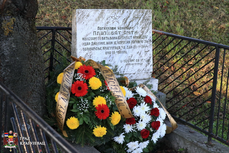 Крај споменика револуционара из Далмације, Плазибат Анти који је погинуо у борбама за ослобођење Крагујевца у октобру 1944. године, венце су положили представници локалне самоуправе, др Гордана Дамњановић, чланица Градског већа за здравствену и социјалну заштиту и Зоран Младеновић, заменик председника Скупштине града и представници СУБНОР-а.