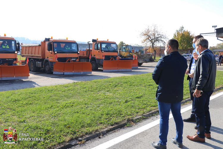 Град Крагујевац је са свим надлежним службама из Предузећа за путеве и ЈКП Шумадија , апсолутно спреман за наступајућу зимску сезону, каже заменик градоначелника Ивица Момчиловић који је данас присуствовао смотри механизације и опреме за зимску службу. Како кажу надлежни из ових предузећа извршено је сервисирање и ремонт комплетне механизације која се користи у зимској служби. Механизација у оба предузећа у претходном периоду је зановљена и појачана, тако да су технички капацитети комплетни и спремни. Сигуран сам да ће ова сезона проћи без икаквих проблема са зимским одржавањем, истакао је заменик градоначелника Момчиловић.