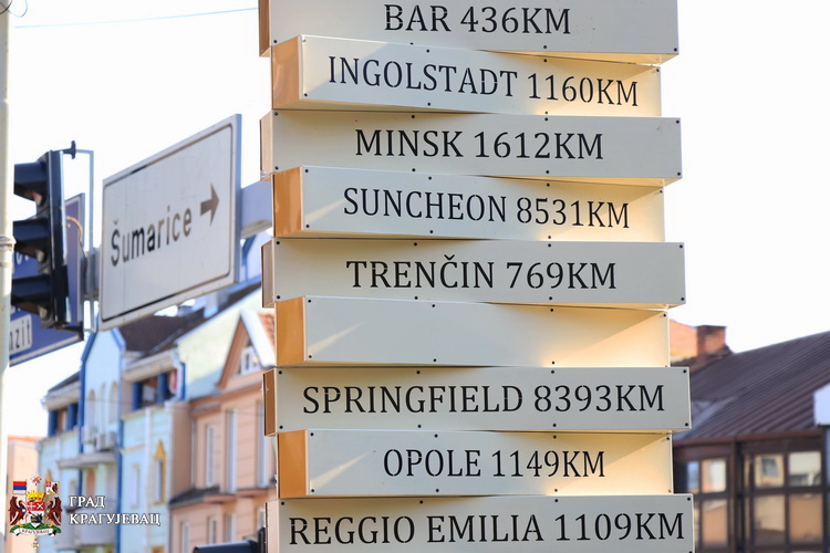 Крагујевац остварује међународну сарадњу са око 30 градова, а на путоказу је остављен празан простор и за уписивање нових.