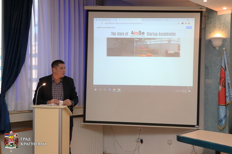 Студенти треће године Економског факултета Универзитета у Крагујевцу, са студијског програма Пословна економија и менаџмент, присуствовали су данас предавању израелског експерта за предузетништво и развој иновација са факултета за инжењерство у Јерусалиму, Мајкла Мизрахија. Тема предавања била је функционисање и креирање заједнице стартапова.