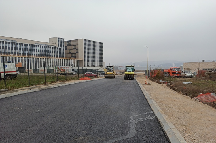 У улици Хитне помоћи, која повезује улицу Слободе и Београдску у току су радови на постављању носећег слоја асфалта.