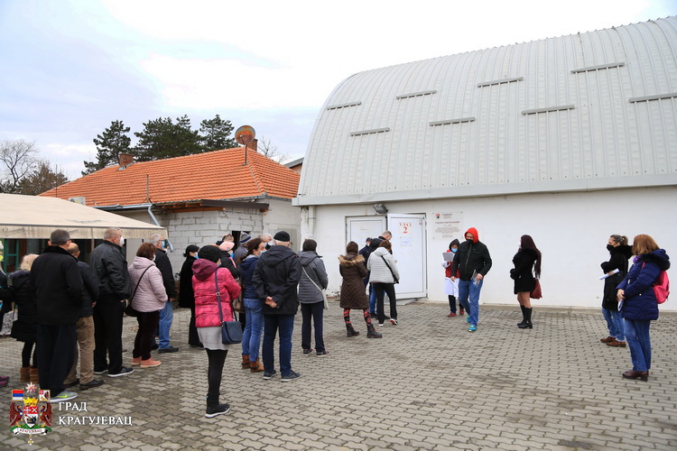 Интересовање Крагујевчана за вакцину је велико. Од почетка имунизације на територији Шумадије вакцину је примило 4757 лица од чега 3382 Крагујевчана. Само јуче, на три пункта у Крагујевцу је вакцинисано 1672 грађана. Након 820 доза Фајзерове вакцине која је стигла крајем децембра, Институту за јавно здравље Крагујевац за Шумадијски округ испоручено је 8000 доза вакцине кинеског произвођача Синофарм. Јутрос је стигло нових 5400 доза истог произвођача и већ су распоређене вакциналним пунктовима.