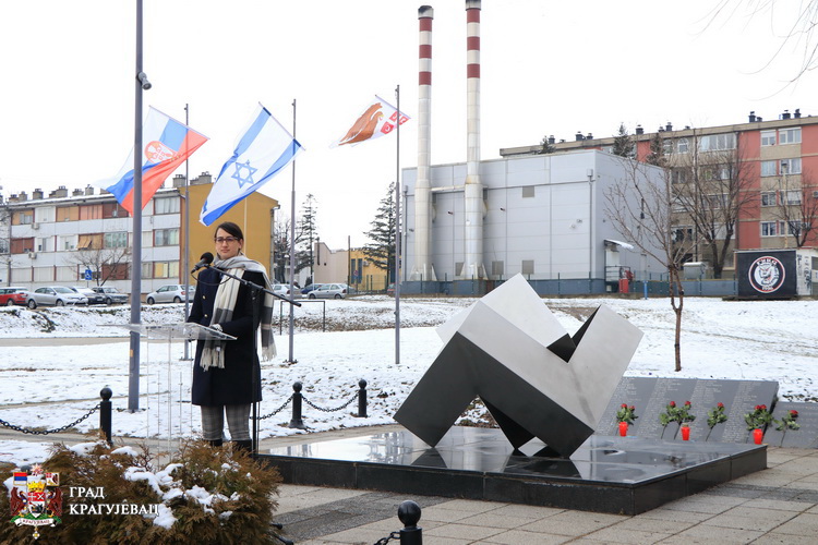 Овде нас је окупио Дан сећања на највеће жртве у историји човечанства. Жртве Холокауста не можемо вратити, али их можемо сачувати од заборава, поручио је градоначелник Крагујевца Никола Дашић. Наша је обавеза да сачувамо човечанство од сличних идеологија. На то нас обавезују милионске жртве. Наша два храбра народа претрпела су велика страдања у Другом светском рату и имају историју заједничког сећања на трагичне догађаје, а ово спомен-обележје за нас Крагујевчане представља симбол повезаности два пријатељска народа уједињена у борби и патњи, рекао је градоначелник Дашић.