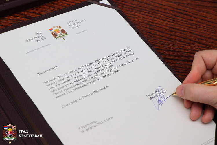 Градоначелник Крагујевца Никола Дашић упутио је честитику, Његовој Светости новоизбараном Патријарху српском господину Порфирију у којој се каже: