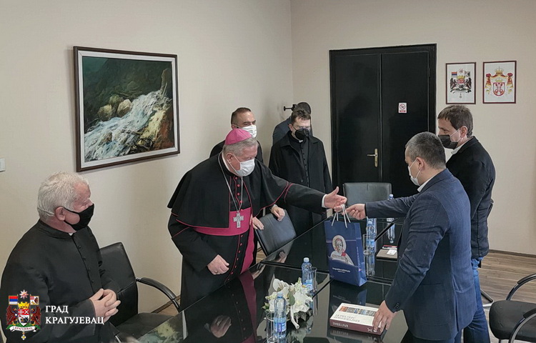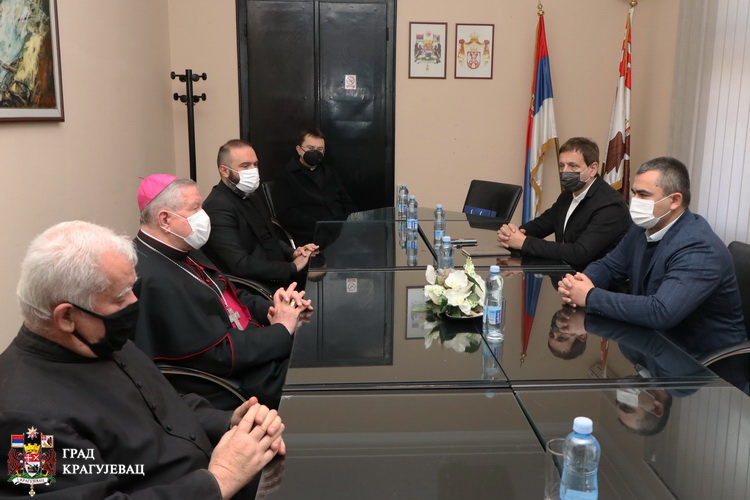 Заменик градоначелника, Ивица Момчиловић и помоћник градоначелника за сарадњу са црквама и верским заједницама, Мирко Чикириз, организовали су пријем за Станислава Хочевара, београдског надбискупа и Стјепана Винојчића, крагујевачког жупника. Била је ово прилика да се традиционално добри и пријатељски односи потврде и отворе нека питања као што су санација већ дотрајалог крова цркве Светог Јосипа у Крагујевцу, решавање статуса заштићеног станара и питање реституције земљишта које је цркви одузето после Другог светског рата.