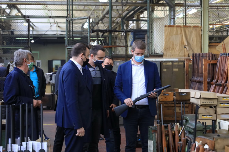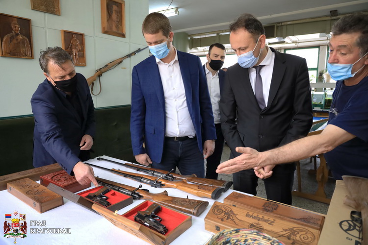 Представници града градоначелник Дашић и Предраг Стевовић члан Градског већа са својим домаћинима, руководством фабрике, генералним директором Младеном Петковићем, извршним директором Душаном Обрадовићем, обишли су погоне производње ловачког и спортског оружја, штанцовања и гравирницу.