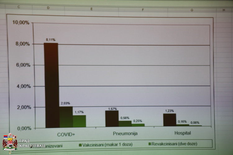Ковид 19 је озбиљна болест, јер је и анализа показала да је 22 посто оболелих добило упалу плућа која може бити смртоносна, а 15 посто је оних чије је стање захтевало болничко лечење, казао је др Василије Антић, директор Дома здравља Крагујевац. Ова студија показује колико је вакцина ефикасна, а урађена је на начин на који су то учинили приликом регистрације Фајзер и Спутњик В вакцине. Дом здравља је ово истраживање морао да уради јер смо држава која има све четири врсте вакцина на располагању, што нема већина земаља на свету, а са друге стране зато што је Крагујевац све време био у врху броја заражених од короне, а у врху је и по броју вакцинисаних. Из нашег рада се показало да су све четири вакцине ефикасне, с тим што неке брже а неке спорије делују, али је битно да све утичу на смањење болничког лечења. У наредним месецима најавио је др Антић очекујемо да студију допунимо подацима испитивањем, поред осталог, старосне доби и антитела.