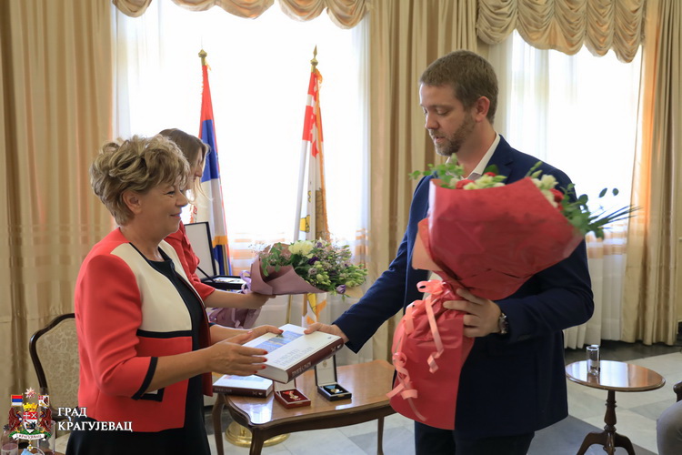 Градоначелник Крагујевца Никола Дашић са сарадницима организoвао је пријем за добитнице државних признања, које им је председник Србије уручио поводом Видовдана – Маријану Станковић, директорку Спомен парка „Крагујевачки октобар“ и др Ружицу Радојевић Марјановић, директорку Инфективне клинике Универзитетског клиничког центра Крагујевац.
