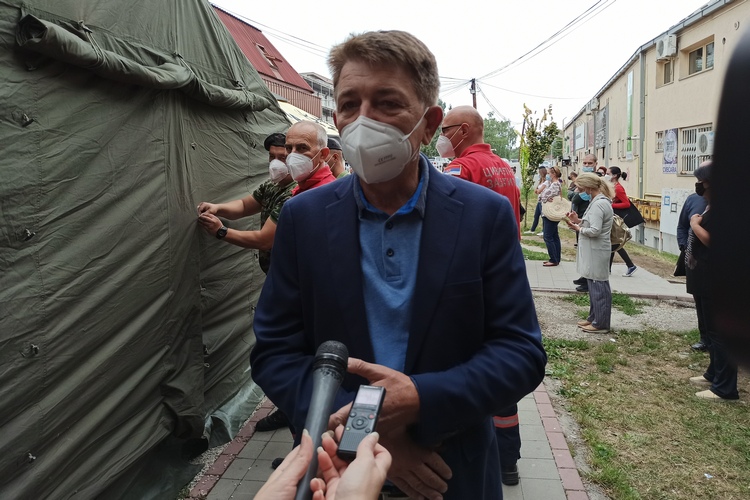 У сарадњи са Штабом за ванредне ситуације града Крагујевца и Војском Србије, поставили смо шаторе како би заштитили грађане од кише и хладнијег времена у наредним месецима, казао је директор Дома здравља, др Василијие Антић.