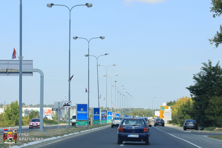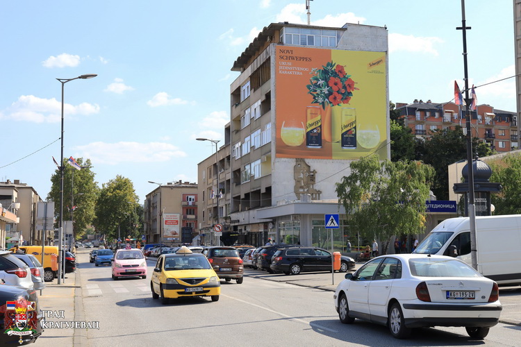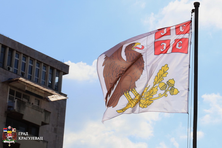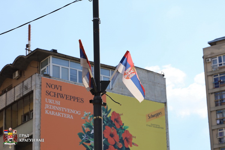 Дуж већине улица у Крагујевцу истакнуте су српске тробојке, као и на згради Градске управе.
