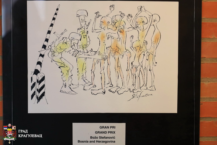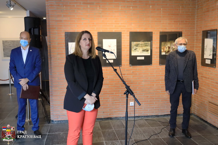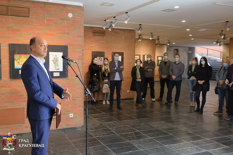 У име свих српских жртава фашизма, Крагујевац негује културу сећања низом антиратних манифестација и о томе говоримо гласно, казао је у свом обраћању Миљан Бјелетић, члан Градског већа за културу на свечаном отварању 21. изложбе. Генерације су оставиле и изнедриле читав низ антиратних програма остављајући иза себе својеврсни културни тестамент, обавезујући све будуће генерације да не иду путем заборава, већ путем сећања. Поред Великог школског часа, „Октох-а“, подсетио је, један од тих важних догађаја је Међународни Салон антиратне карикатуре, чија универзалносг карактера окупља ауторе из читавог света који својим карикатурама шаљу поруке читљиве свим људима без обзира на веру, нацију, образовање и језик. Поруке које носе ова дела разоткривају рат у својој противуречности, карикирању, подсмевају се његовом бесмислу. Салон је успео да споји две, можда наизглед неспојиве теме - рат и хумор чиме је своју мисију остварио, као снажан мировни програм. Његови оснивачи су пре 40 година ишли корак испред времена, и њихова идеја 40 година после живи дахом наде да се историја више не понови, поручио је Бјелетић.