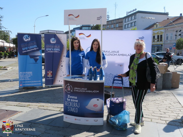У оквиру пројекта ”Управљање стакленом амбалажом на Западном Балкану” који партнерски реализују НАЛЕД, ЈКП Шумадија и Град Крагујевац, а спроводи Немачка организација за међународну сарадњу (ГИЗ), данас је у центру града, на Тргу код Крста, организована акција прикупљања и рециклаже стаклене амбалаже. У име града, почетку акције присуствовао је члан Градског већа за унапређење и заштиту животне средине, Стефан Никезић, директор ЈКП Шумадија, Марко Вујновић, представници НАЛЕД-а и ГИЗ-а, и представници компанија „Секопак“ и „Апатинска пивара“. Грађани који су се одазвали акцији и донели стаклену амбалажу, добили су пригодне поклоне.