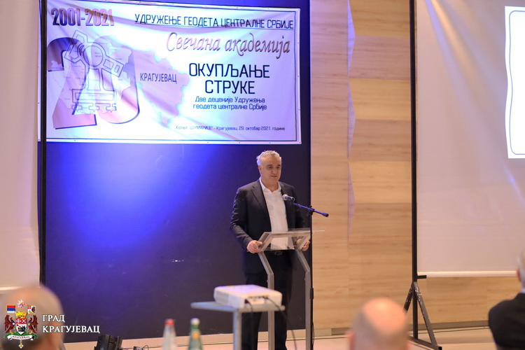 Удружење геодета Централне Србије свечаном академијом обележило је данас 20 година успешног рада. Обележавању јубилеја су поред представника струке, установа и институција, републичких и градских, предствника градова и општина и привреде, присуствовали су директор Републичког геодетског завода Борко Драшковић и градоначелник Крагујевца Никола Дашић са сарадницима.