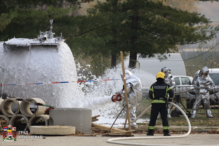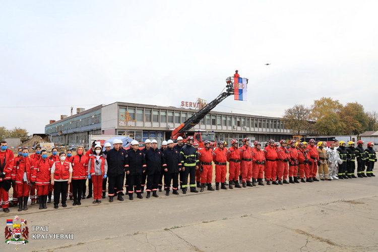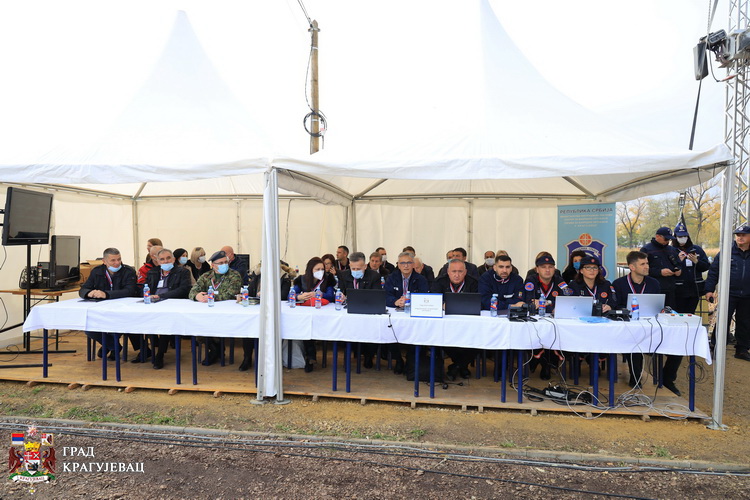Сегмент вежбе у Крагујевцу, којој су поред градоначелника и команданта Штаба за ванредне ситуације Николе Дашића, присуствовали Бојан Јоцић државни секретар Министарства унутрашњих послова и Лука Чаушић в.д. помоћника министра унутрашњих послова – начелник Сектора за ванредне ситуације, обухватио је спасавање након разорног земљотреса јачине 7 јединица Рихтерове скале. Земљотрес је, по сценарију, за последице имао пожар на надземном резервоару бензинске пумпе, обрушавање дела фабричког објекта у којем се налази преко 50 радника, као и спасавање повређених у саобраћајним незгодама, у којима је возач путничког возила изгубио контролу и слетео у језеро Бубањ.