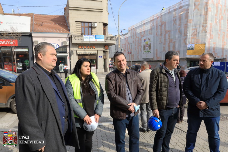 Градоначелник Крагујевца Никола Дашић, помоћник градоначелника за реализацију капиталних пројеката и сарадњу са Владом РС Александар Милошевић и директор Завода за заштиту споменика културе, Ненад Карамијалковић, заједно са представницима грађевинске фирме „Јадран“, обишли су данас радове на реконструкцији фасада у старом градском језгру.