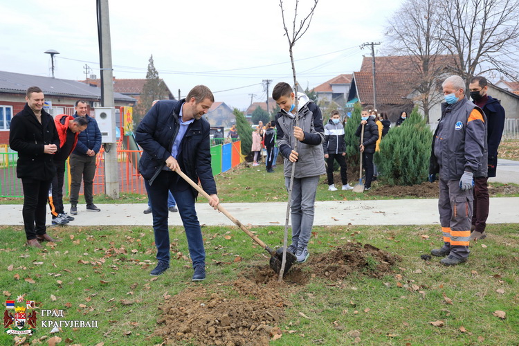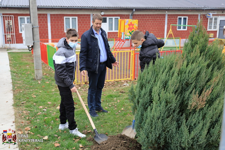 Осам туја и две јапанске трешње донације су расадника из насеља Ердеч, а техничку подршку је пружила ЈКП Шумадија.