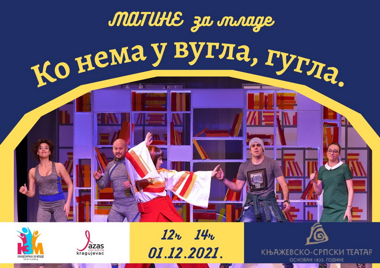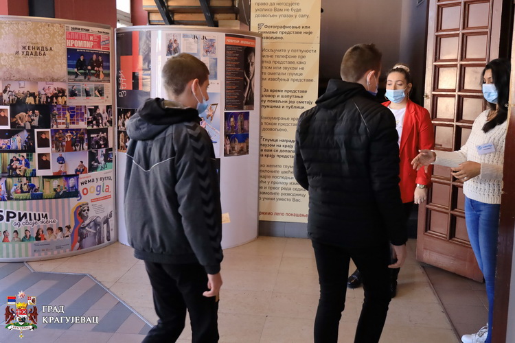 У плану је да и у наредном периоду у сарадњи са Књажевско-српским театром организујемо матинее, а данас ће, уз поштовање противепидемијских мера, представу ’’Ко нема у вугла гугла’’ погледати ученици ’’Прве крагујевачке гимназије’’, Прве техничке , Економске, Средње стручне школе, али и ученици основних школа ’’Светозар Марковић’’, ’’Мома Станојловић’’, ’’Драгиша Луковић Шпанац’’, ’’Јулијана Ћатић’’, казала је Марија Ђоковић из Канцеларије за младе.