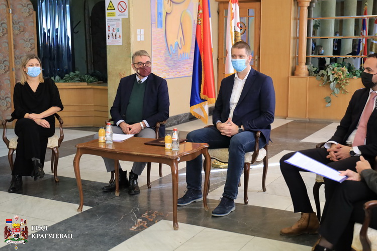 Потписивању Меморандума о сарадњи у Свечаном салону Градске управе, присуствовали су помоћник градоначелника за међународну сарадњу града Крагујевца, Борис Ковачевић и шеф Службе за европске интеграције и међународну сарадњу Сталне конференција градова и општина Александра Вукмировић.