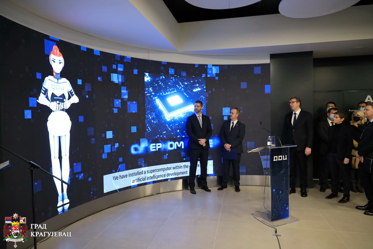 Радостан сам и поносан што Србија данас може ово себи да приушти, само суперкомпјутер кошта два милиона евра, рекао је у обраћању медијима председник државе Александар Вучић. У изградњу Дата центра у Крагујевцу, који је пет пута већи од оног у Београду, укупно је уложено 55 милиона евра. Пуштање у рад прве Националне платформе за вештачку интелигенцију и развој области вештачке интелигенције важно је, јер ће наша деца, која би отишла, у Београд а нажалост и у иностранство, имати прилику да живе и раде, да зарађују у својој земљи, у најбољим могућим условима. Покретањем ове платформе, Србија је ушла међу 26 земаља које имају такву платформу, а једна смо од ретких земаља која има и свој Институт за вештачку интелигенцију.