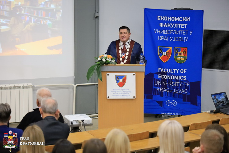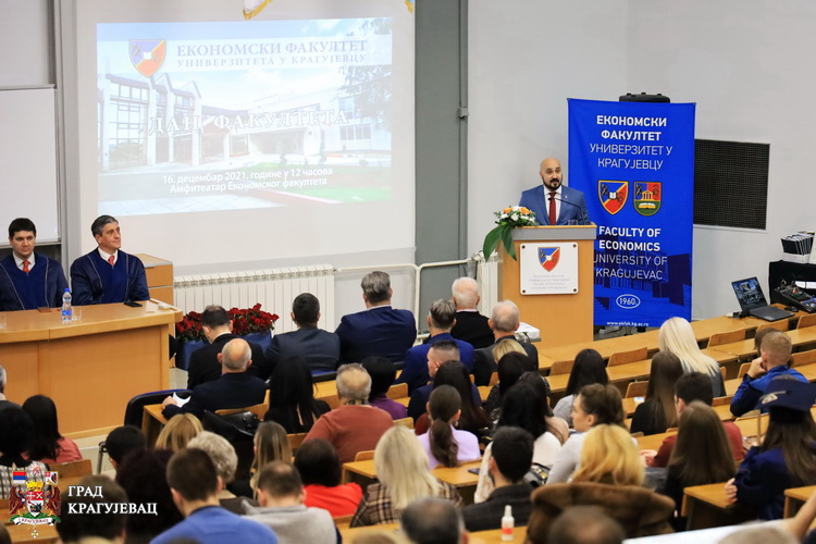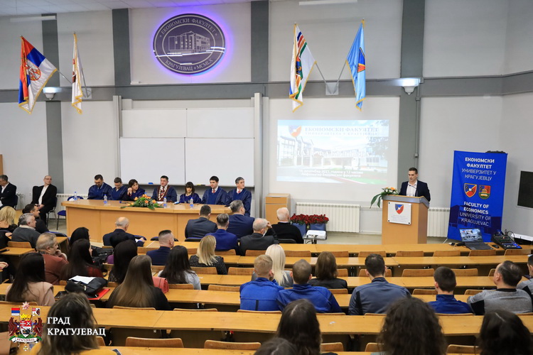 Пуни ентузијазма са новим студијским програмима, 20 посто више студената уписаних него претходне школске године, значајним искораком према привреди, организацијама, банкама, осигуравајућим компанијама са којима потписујемо уговоре о сарадњи и где обезбеђујемо праксу студентима, итекако имамо шта да понудимо академској заједници, не само Крагујевца већ читаве централне Србије, казао је проф. др Предраг Веселиновић, декан Економског факултета. Он је говорио о пројектима и реализованим плановима претходне четири године, а о будућим плановима, проф. др Веселиновић је истакао да ће до следећег Дана факултета бити отворен акредитован студијски програм на мастер студијама на енглеском језику. Што се тиче научно-истраживачког рада, наш часопис Економски хоризонт је од пре годину на Скопус листи и један од најцитиранијих часописа у Србији. Циљ нам је да се позиционирамо на Ројтерс листи, што ће бити значајно не само за факултет или град већ за читаву Србију, додао је декан Економског факултета.