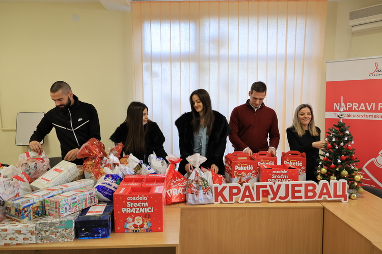 Град Крагујевац подржава ову акцију на тај начин што пружа подршку у организационом смислу преко Канцеларије за младе, да наши грађани, приватне компаније покажу своје најплеменитије, хумане особине, да су саосећајни са младим људима који тренутно воде најважнију животну битку. Желели смо на овај начин да им улепшамо новогодишње и божићне празнике онако како су и нама улепшавали када смо били у њиховим годинама. Међу донаторима ове акције су Ауто центар Atrium cars, Blythswood Србија, Културни центар УМУС, Студентски парламент Правног факултета, Удружења VIBE – казао је Стефан Јовановић, помоћник градоначелника за омладину и сарадњу са Универзитетом.