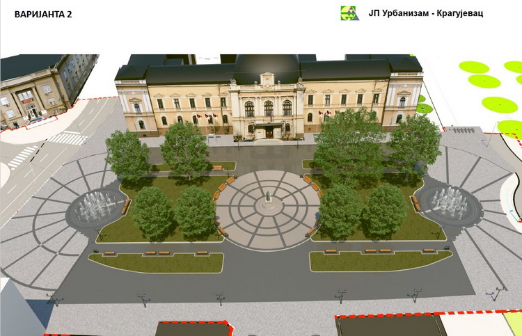 Поред укидања саобраћаја испред зграде суда и трансформације паркинг места у пешачку зону, предвиђено је повезивање новоформираног трга и постојеће пешачке зоне у једну целину. Уз проширење зоне споменика, биће формиране две кружне партерне фонтане у основи трга, пречника 35 метара, као и изградња две линијске фонтане са амбијенталном расветом на простору између зграда Москва и Златна ружа. Вредност радова је око 300 милиона динара, али ће након пројекта за извођење бити познат тачан износ средстава за радове, количину и квалитет материјала.