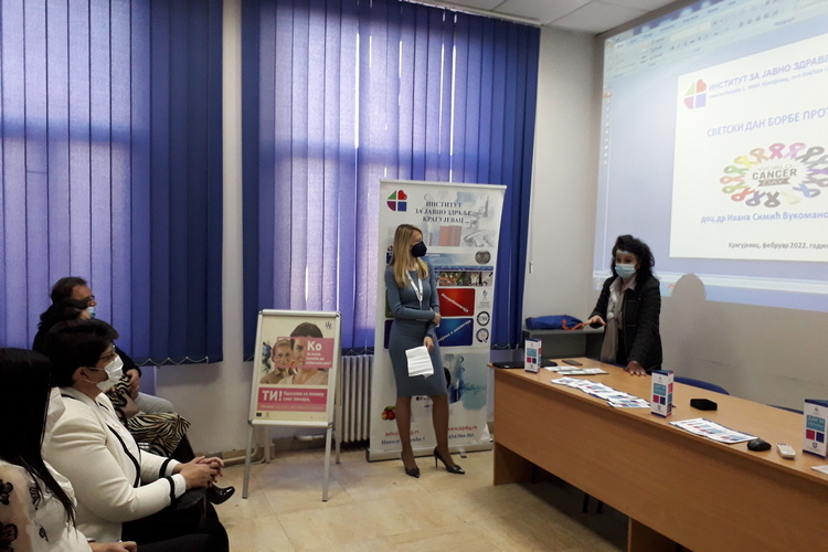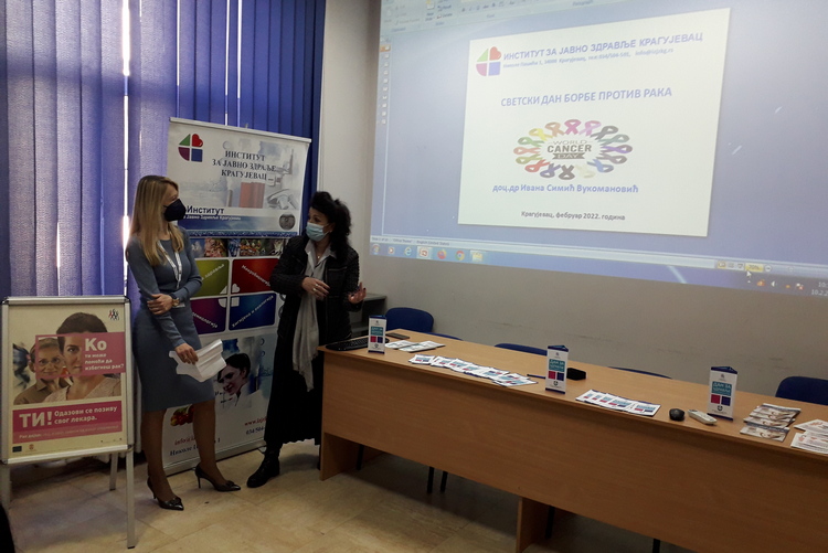 Институт за јавно здравље Крагујевац у сарадњи са Институтом за јавно здравље Др Милан Јовановић Батут и УКЦ Крагујевац има планиране и припремљене програме и активности на тему примарне и секундарне превенције малигних болести које ће да реализује у складу са епидемиолошком ситуацијом, рекла је на конференцији за новинаре доц. др Ивана Симић Вукомановић, начелница Центра за промоцију здравља. Партнерски је израђен здравствено-васпитни материјал за све координаторе активности на нивоу округа.