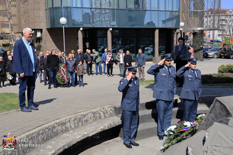 Полагањем венаца и цвећа крај споменика Успење у Крагујевцу је обележена 23. годишњица од почетка НАТО бомбардовања Савезне Републике Југославије и одата пошта Крагујевчанима који су страдали током НАТО агресије и оружаних сукоба од 1990. до 1999. године на простору бивше Југославије.