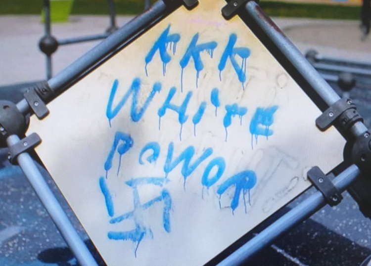 У Креативном парку, омиљеном месту за игру и дружење најмлађих Крагујевчана, јутрос је на једној од справа освануо натпис са расистичком поруком и нацистичким симболом.