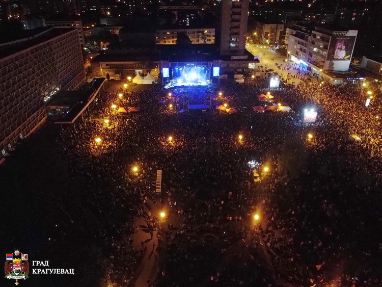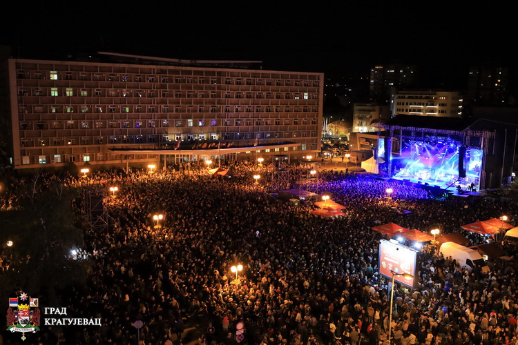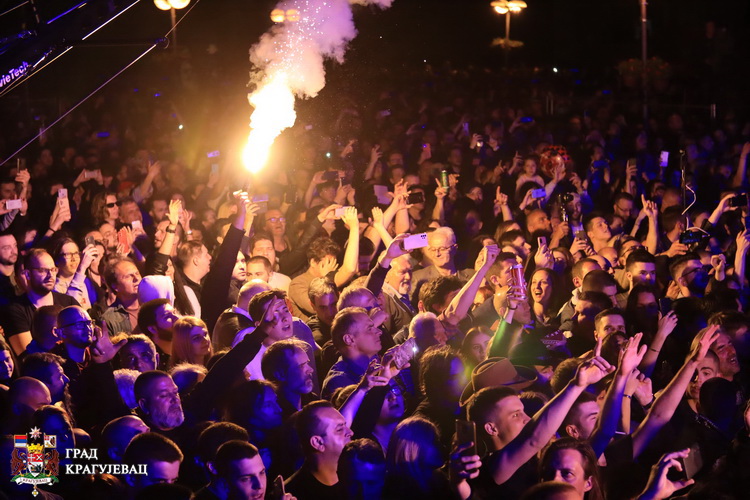 Концертом који је трајао више од три сата, легенде рока одушевиле су више од 30 000 гледалаца на препуном Тргу слободе испред зграде Градске управе који су певали заједно са њима. У публици су биле све генерације, а осим Крагујевчана на концерту су били и гледаоци из бројних градова Србије, чак и странци, који су дошли у Крагујевац да уживају у хитовима Улазак у харем, Шумадијски блуз, Црна дама, Даире, Професор, Сателит...
