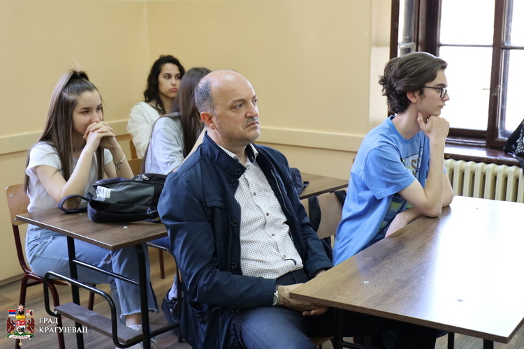 Ђацима Прве крагујевачке гимназије који су поред осталих присуствовали данашњем догађају приказана је емисија из серијала „Гимназија знањем сија“ и емисија „Суграђани“ посвећена професорки Катарини Вељковић.