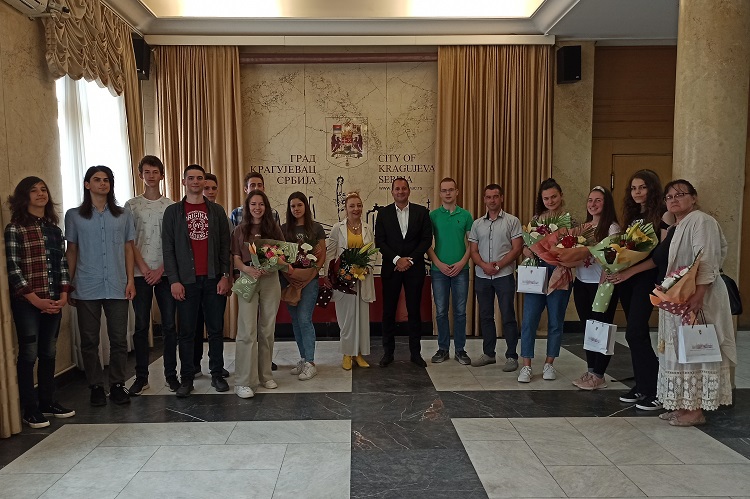На републичком такмичењу из физике за средње школе ученици Прве крагујевачке гимназије су освојили пет трећих награда, две друге и четири прве награде. За ђаке и професоре, њихове менторе, члан Градског већа за образовање Душан Алексић, организовао је свечани пријем.