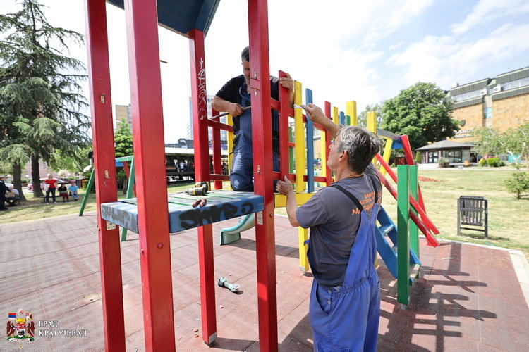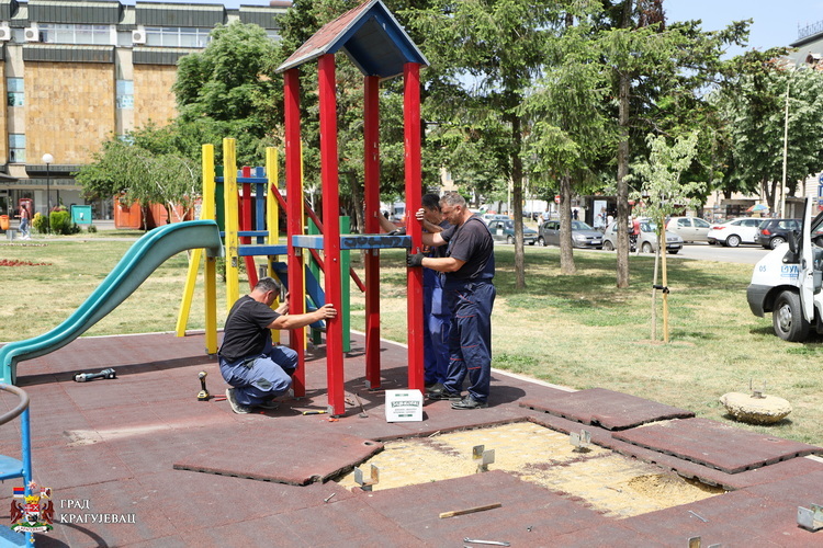 Опрема за игру и забаву на дечијем игралишту у улици Краља Петра I код „Перона“ су оштећене и више нису безбедне за употребу, због чега су теренске службе предузећа Шумадије д.о.о., почеле са уклањањем справа а потом ће приступити и реконструкцији игралишта.