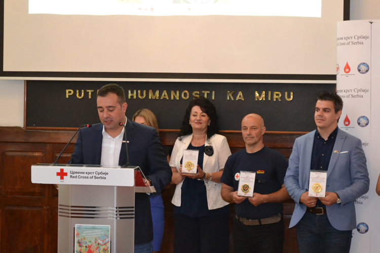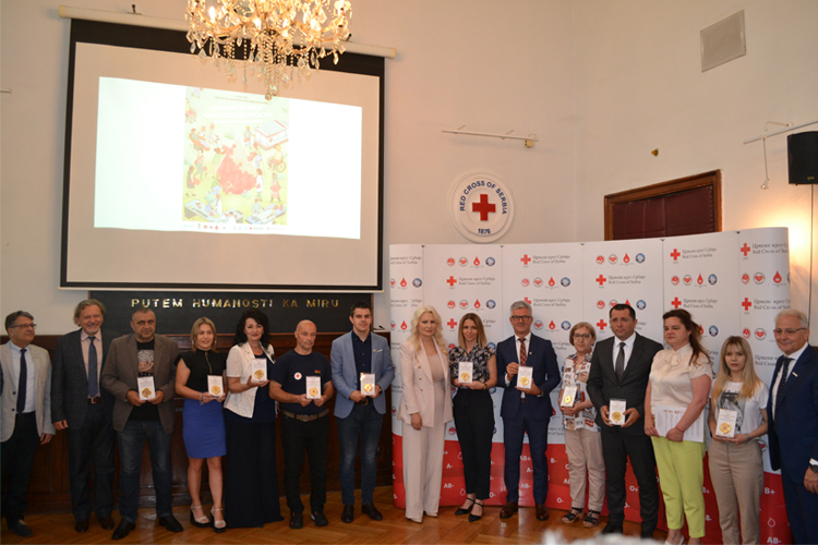 На свечаном пријему који је Црвени крст приредио у Београду поводом Светског дана добровољних давалаца крви, додељене су и награде најбољим ауторима радова на републичком конкурсу "Крв живот значи".