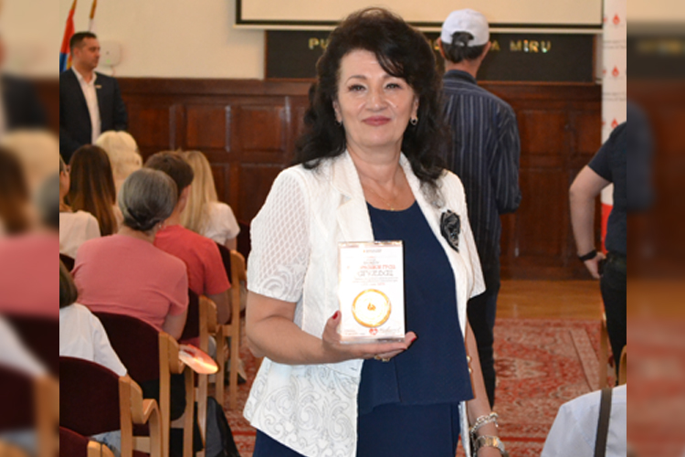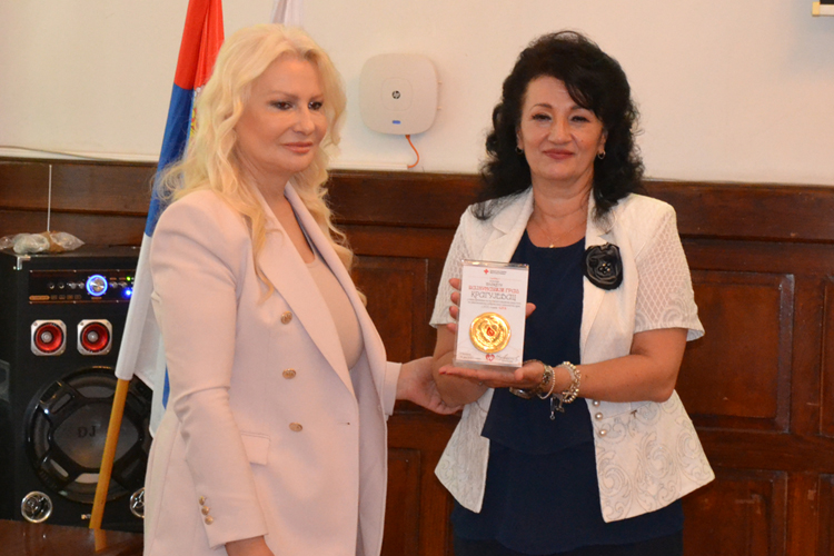 Ово значајно признање којим се још једном потврђује успех у заједничким активностима локалне самоуправе, Црвеног крста Крагујевац и Службе за трансфузију на мотивацији и промоцији добровољног давалаштва, Гордани Дамњановић, чланици Градског већа за здравствену и социјалну заштиту уручила је изасланица Председника Републике, Саветница за здравство Верица Лазић.