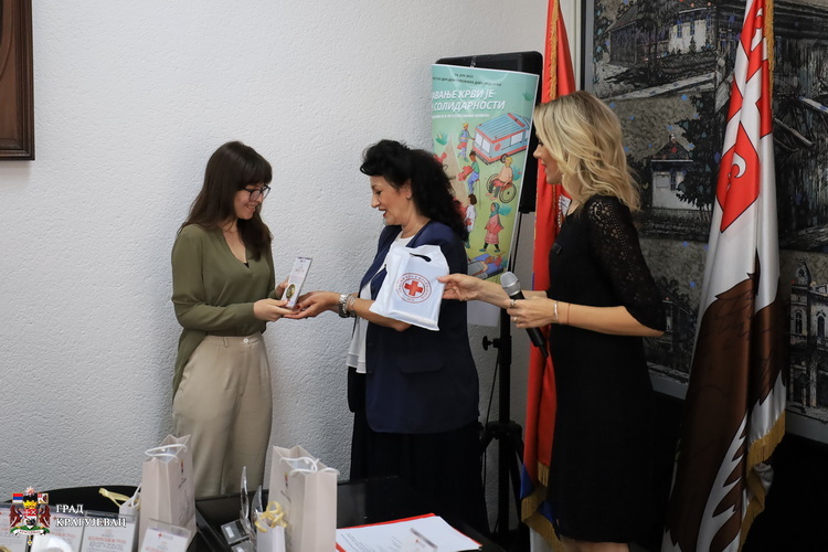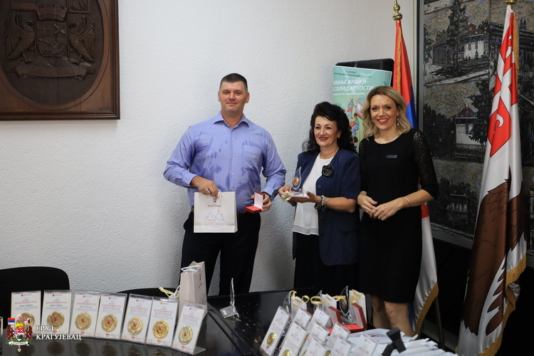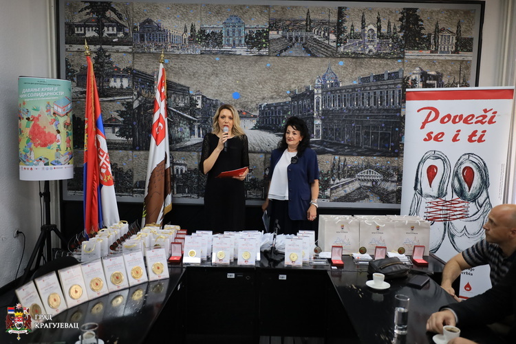Крагујевац је један од најхуманијих градова у последњих седам година а у прилог томе говори податак да превазилази европски стандард када је реч о броју становника, добровољних давалаца крви. Градска организација Црвеног крста је то постигла заједничким активностима са Службом за трансфузију УКЦ Крагујевац уз подршку локалне самоуправе, а пре свега захваљујући хуманима Крагујевчанима који се одазивају на све наше позиве, рекла је Марица Патрногић, ПР ГО Црвеног крста. Овим поводом желимо да им се захвалимо доделом признања Црвеног крста Србије. Сваком јединицом крви некоме спасавамо живот зато су даваоци крви наше благо, поручила је Патрногић.