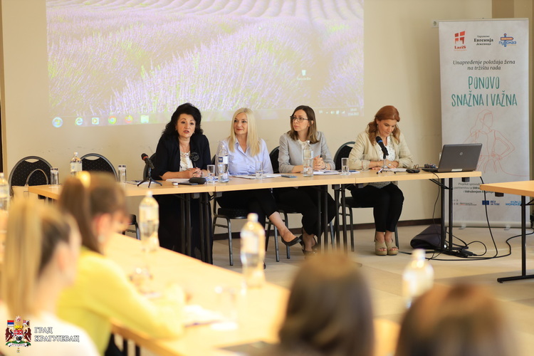У име Града, учеснике је поздравила др Гордана Дамњановић, чланица Градског већа за здравствену и социјалну заштиту и председница Савета за родну равноправност. Град Крагујевац препознаје економско оснаживање жена као изузетно важну тему, истакла је др Дамњановић.