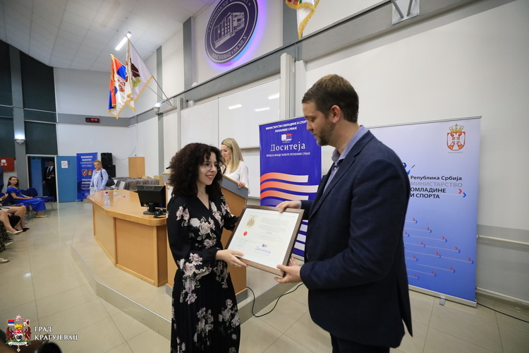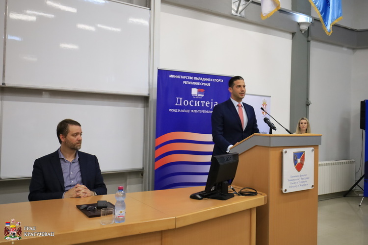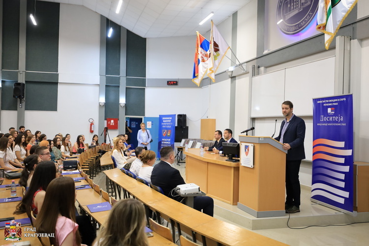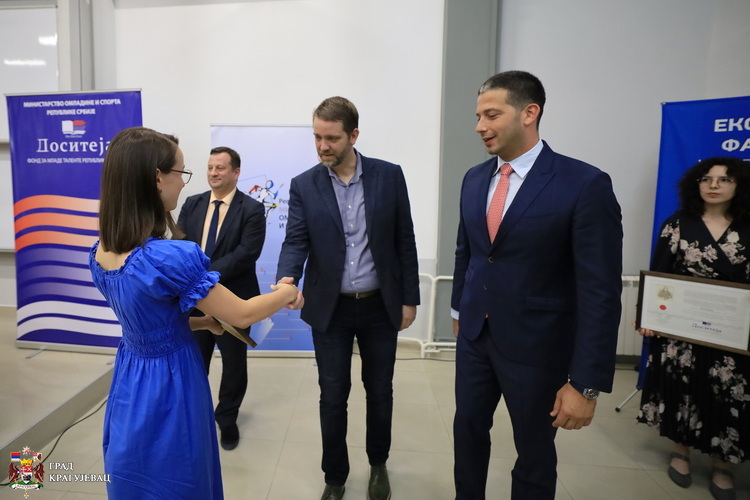 Најбољим студентима завршних година основних и мастер студија факултета Универзитета у Крагујевцу, министар омладине и спорта и председник Фонда за младе таленте Републике Србије, Вања Удовичић, градоначелник Крагујевца Никола Дашић и ректор Универзитета проф. др Ненад Филиповић уручили су стипендије Доситеја.